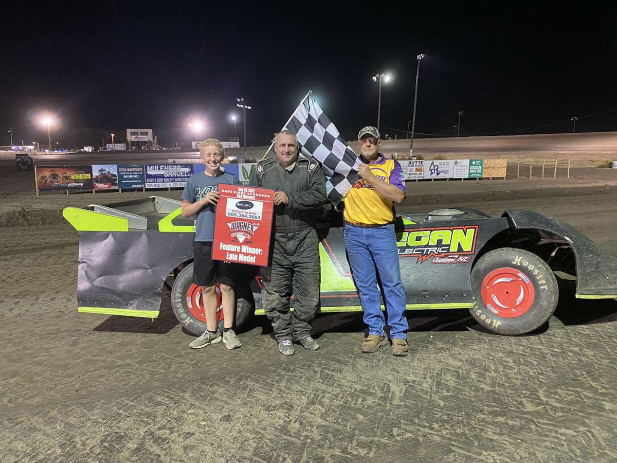 Brad Vogt took his Lazer Chassis Late Model to Victory Lane on Saturday night at Wagner (S.D.) Speedway.